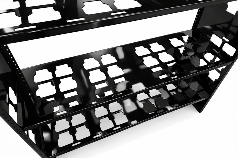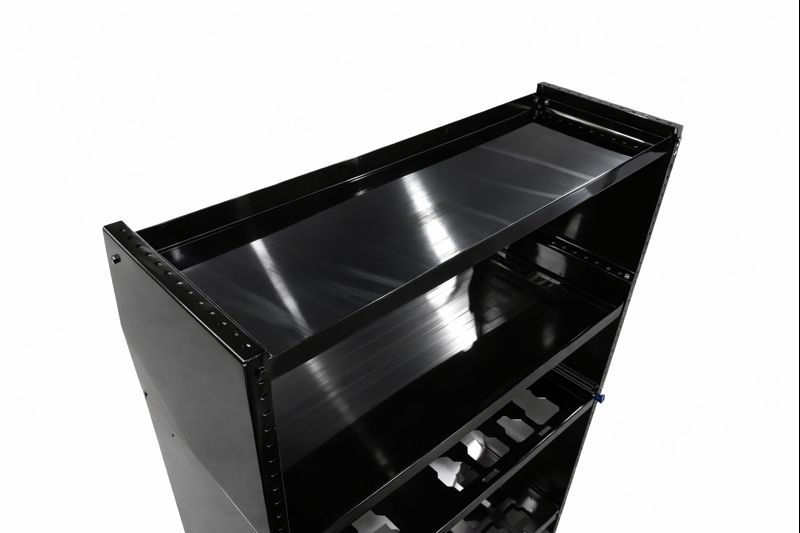 “Please note that the directions and shelf types are designed for specific locations. The caddy is intended to be used as the top shelf on slanted sides only. Slanted shelves are designed to fit the curved walls of vans, while square-back shelves are intended for box vans and garage installations.”